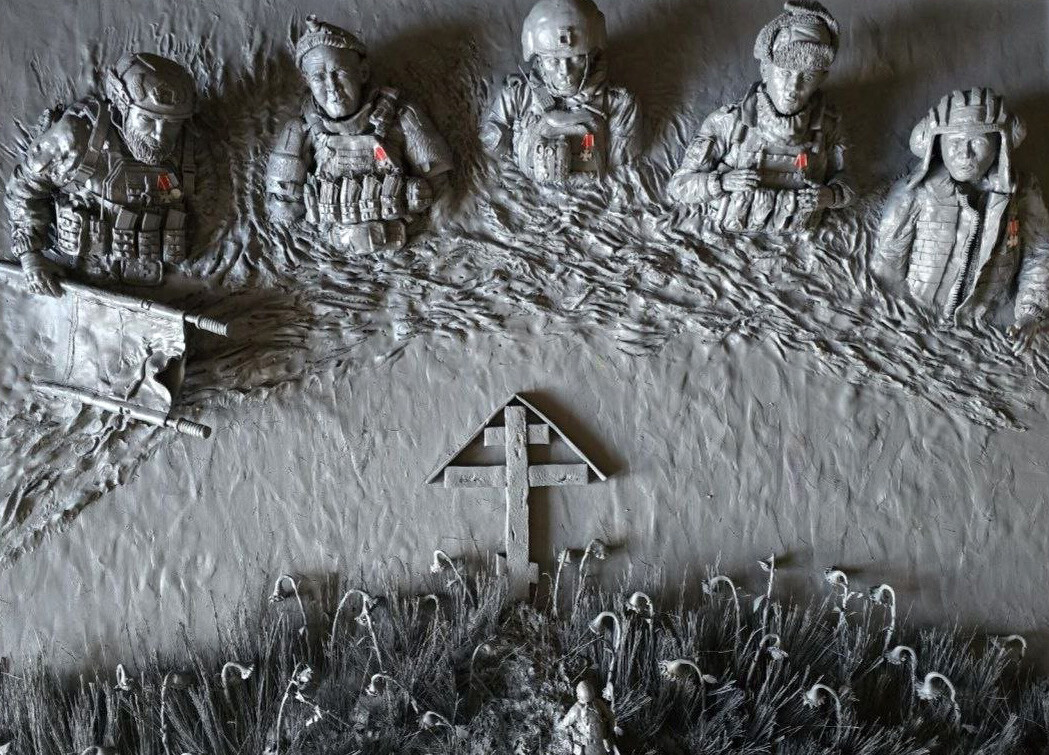 Представляя в Луганске свои книги, генеральный директор издательства «Яуза» Павел Быстров оставил мне ящик изданий для передачи кадетам. Среди прочих, о которых я уже так или иначе рассказывал, был сборник фронтовых очерков — книга «Мы были людьми» Лукаса Аппероля. Псевдоним неслучаен, он сочетает в себе «свет» (Lucas) и известный итальянский горьковато-сладкий аперитив (Aperol), отсылающий к мирной жизни, которую война «отменила». Это имя не маскировка, а код: как остаться человеком в пекле, сохранить свет внутри и не забыть, что до окопов было лето, солнце и беззаботность. Сам автор называет себя «очевидцем из группы эвакуации» и пишет не о пафосе, а о чистилище, где рождается подлинное. Быстров рассказал мне об авторе, мол, талантливый человек талантлив во всем: дизайн книги построен на графике автора. И вот натыкаюсь в сети: «Лукас Аппероль. „Молчание степей“, барельеф, 100×70 см». Это его авторская работа размером метр на 70 см. Судя по всему — скульптурный пластилин, но это не точно. Макет возможного памятника.