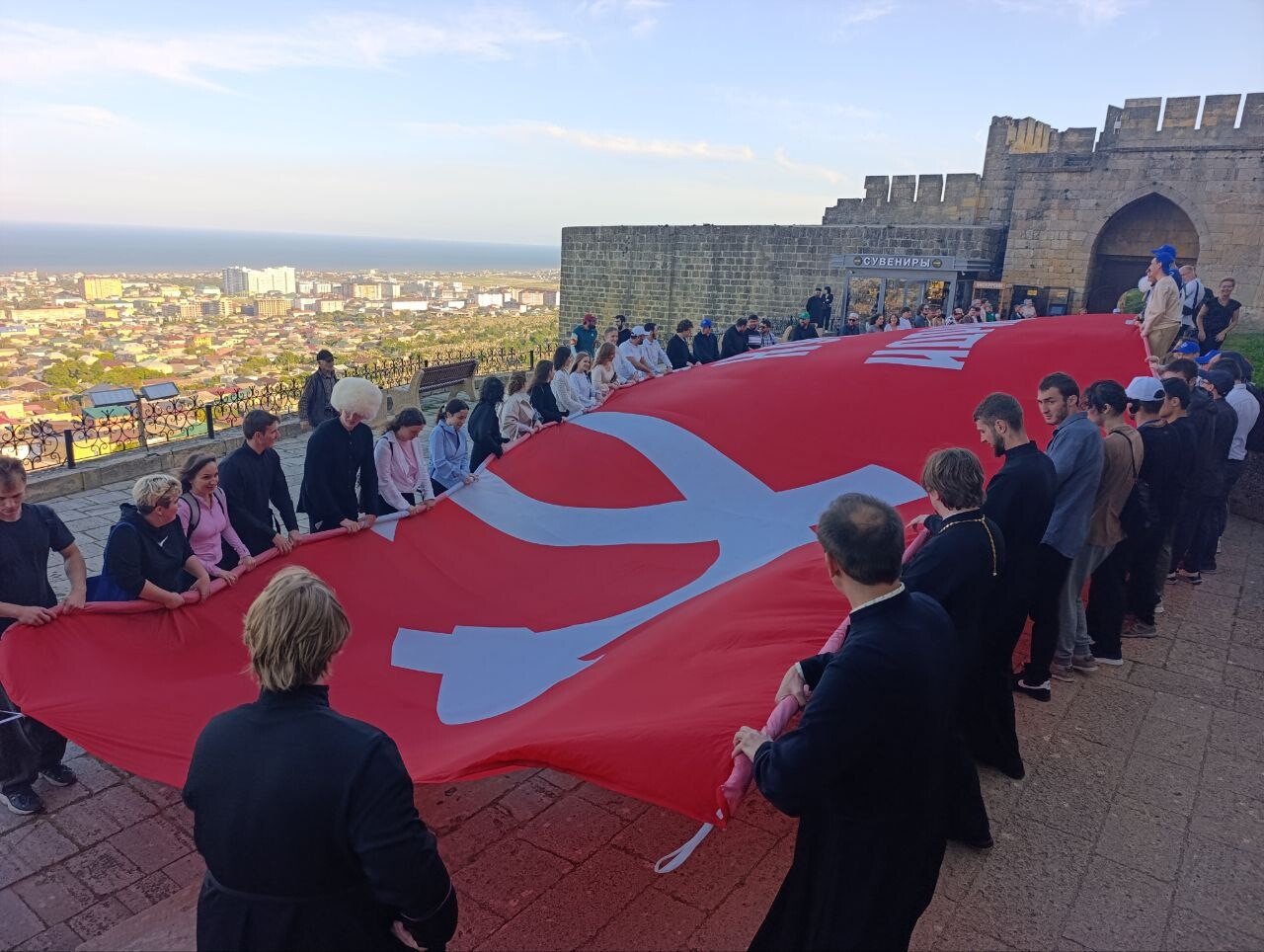 — В этом году форум проходил под эгидой 80-летия Великой Победы. Мы вспоминали заслуги представителей церквей, Русской Православной Церкви и других конфессий в борьбе с коричневой чумой фашизма, которая пришла на нашу землю, принесла необычайный урон и трагедию, но была побеждена нашими дедами и прадедами. Мы, участники форума, развернули два знамени Великой Победы: одно в стенах санатория под гимн Российской Федерации, а второй раз — огромное полотно в старинной крепости Нарын-Кала в Дербенте. Это было очень торжественно, очень величественно.