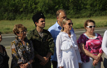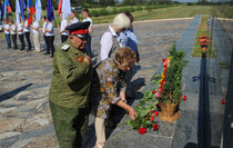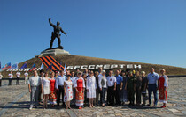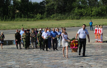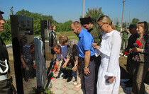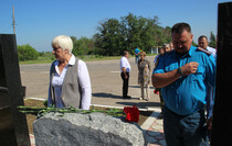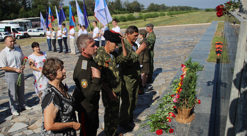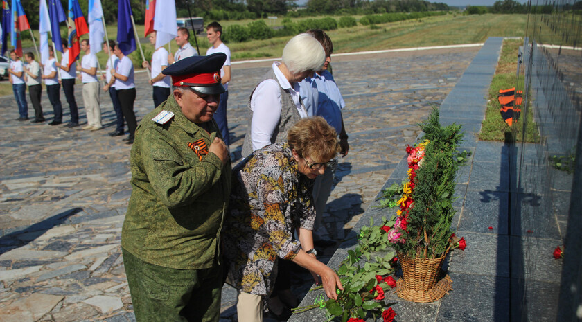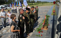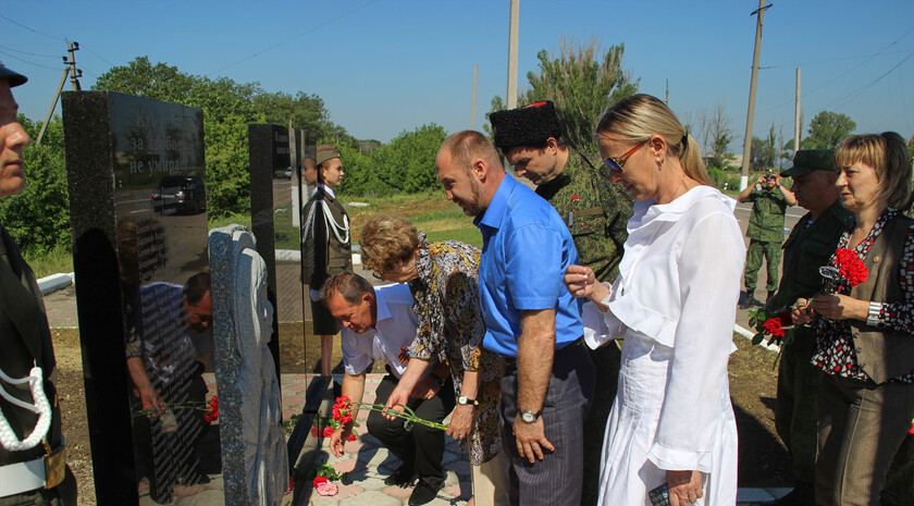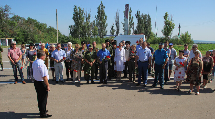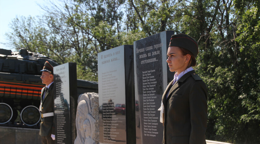 “The Slavyanoserbskiy district is marking a big date today. It’s the 76th anniversary since Alexei Yeremenko raised fighters for his last combat. Every year we gather at this sacred place at the monument to the “Kombat” and this very fact alone shows that we have a history of our own which we remember and venerate, and that means that we have a future,” head of the Slavyanoserbskiy district administration, chairman of the district branch of the Mir Luganschine social movement Alexander Deineka said.