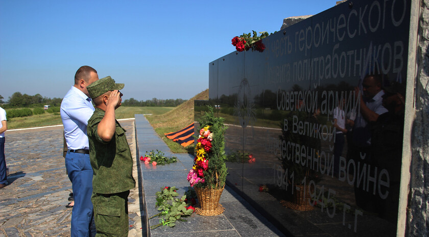 LUGANSK, July 12 (Lugansk Media Centre) - The Lugansk People’s Republic Slavyanoserbskiy district hosted the commemorative event marking the 76th anniversary of the feat of legendary political commissar Alexey Yeremenko best known by the photo called “Kombat.”
