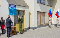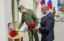 The memorial plaque with the hero's name was installed on the Lugansk Academic Puppet Theater, and the LPR Head Leonid Pasechnik attended the ceremony of its unveiling, as well the city mayor Manolis Pilavov.