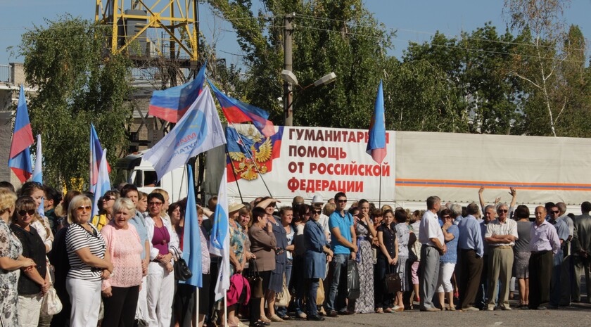 "Юбилейный" конвой МЧС России прибыл в Луганск в годовщину доставки первой гумпомощи, 20 августа 2015 года