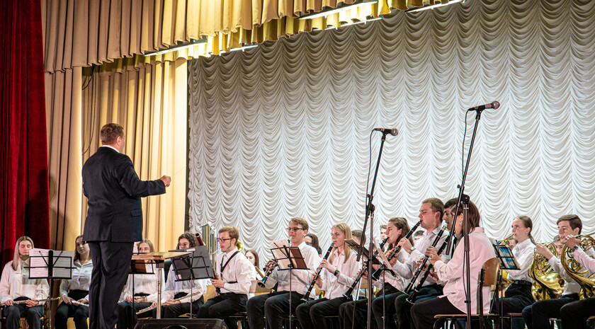 В концертной программе принял участие Духовой оркестр ЛГАКИ под руководством заслуженного деятеля искусств Украины, профессора Сергея Йовса.