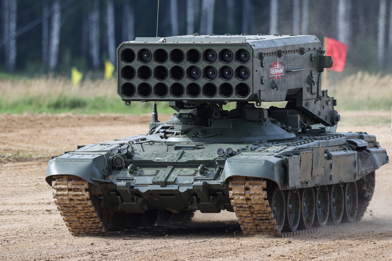«Концерн „Уралвагонзавод“ госкорпорации „Ростех“ в преддверии Дня войск радиационной, химической и биологической защиты отправил в российскую армию очередную партию тяжелых огнеметных систем ТОС-1А „Солнцепек“. Машины получили модернизированный комплекс защиты от беспилотников», — рассказали там.