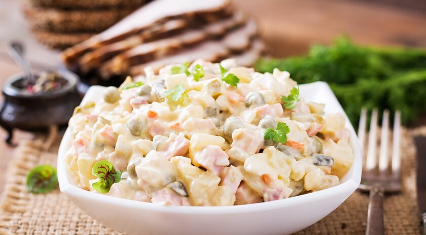 Салат «Оливье» будет полезным, если его сделать из качественных и натуральных продуктов. Об этом изданию aif.ru рассказал диетолог Антон Поляков.