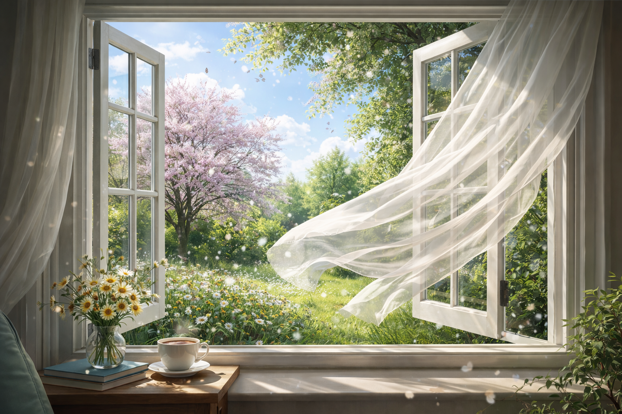 Даже зимой стоит открывать окна на пять-десять минут несколько раз в день. Лучше всего работает сквозное проветривание: оно быстро заменяет застоявшийся воздух свежим, не давая стенам остыть. Идеально — проветривать утром, после сна, и перед тем, как ложиться в постель.