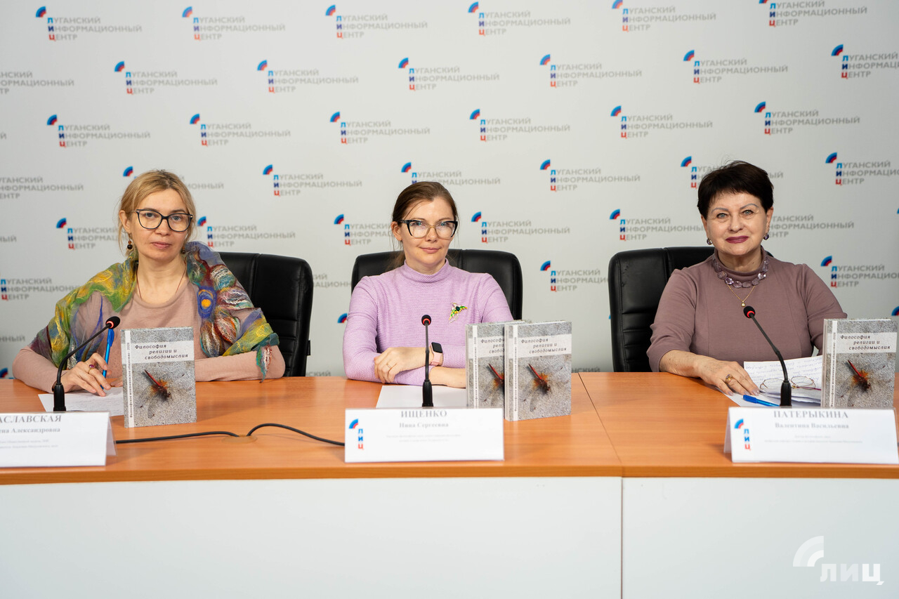 Философское монтеневское общество (ФМО) Луганска представило на брифинге в ЛуганскИнформЦентре новый сборник статей «Философия религии и свободомыслия».