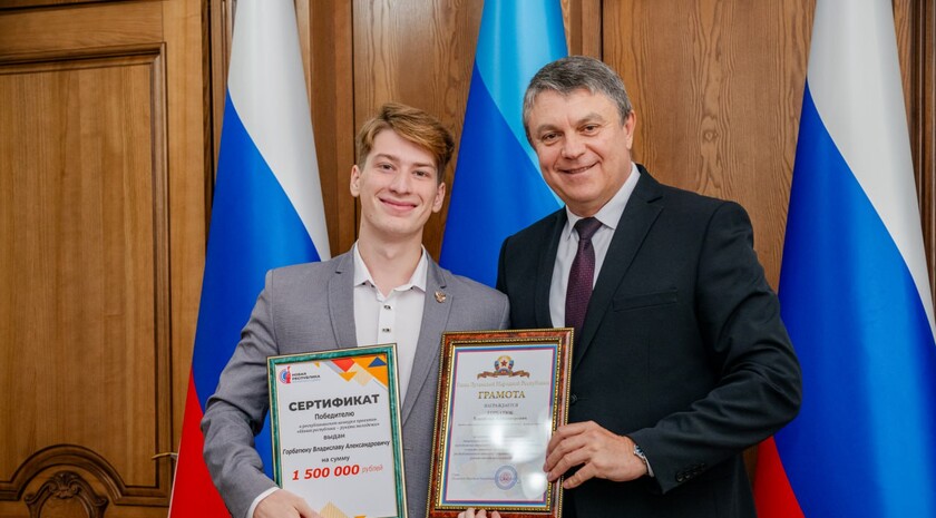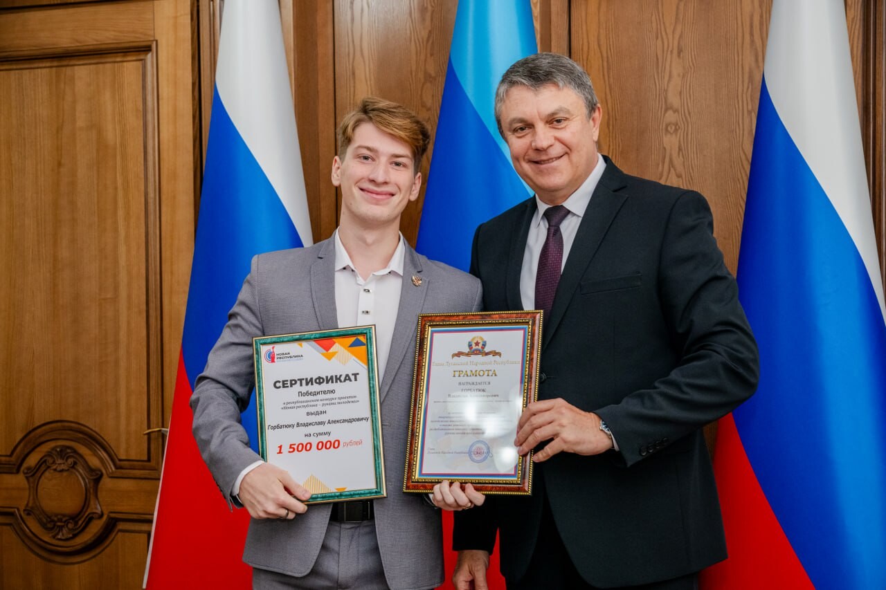 Глава ЛНР Леонид Пасечник торжественно вручил награды победителям третьего конкурса проектов «Новая республика — руками молодежи». Общая сумма грантов составила более четырех млн руб.