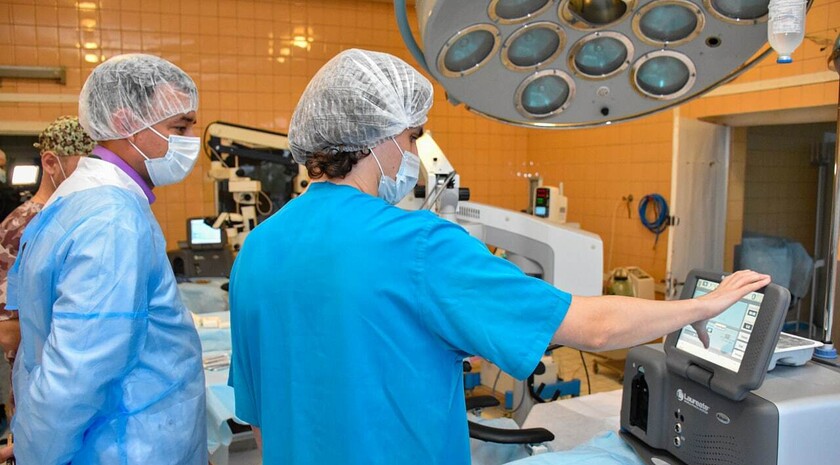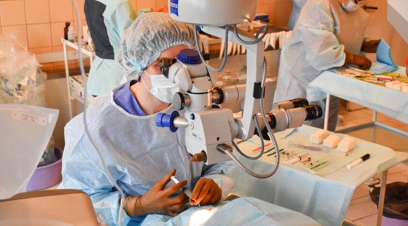 "Мы сейчас привезли с собой соответствующие расходные материалы, чтобы этот процесс (проведения сложных операционных вмешательств на глазах) здесь (в ЛРКБ) отладить на будущее. Здесь врачи подготовленные, они присутствуют здесь в операционной, проходят мастер-класс, обучение", - сказал он.