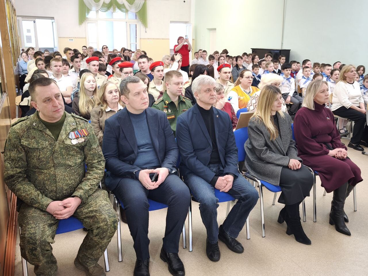 Первой площадкой форума «Верим в Донбасс» стал Брянковский учебно-воспитательный комплекс № 5. Мероприятие объединило военнослужащих, родственников погибших участников СВО и молодежь, представившая театральные постановки о боевых действиях в Донбассе.