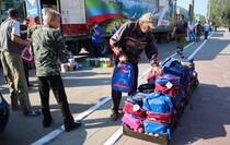 Водолацкий отметил, что в гуманитарную помощь вошли продукты питания, вода, медикаменты, рюкзаки для первоклассников.