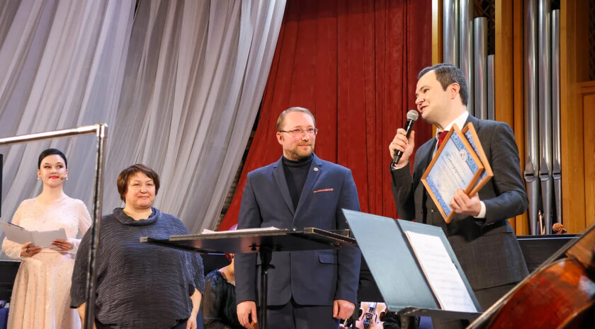 Во время концерта министр вручил благодарность художественному руководителю Донецкой государственной академической филармонии Александру Парецкому и Донецкому симфоническому оркестру.