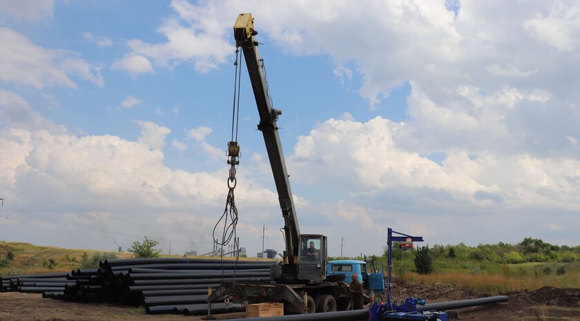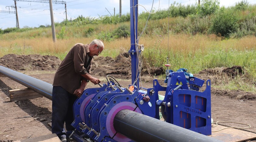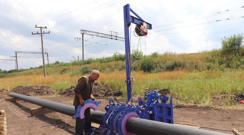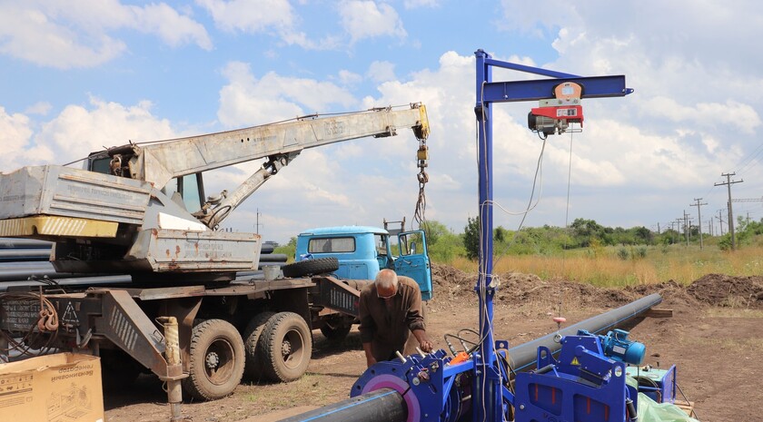 Он рассказал, что в рамках реализации государственной целевой программы, предусматривающей капитальный ремонт аварийных участков магистрального водовода, подающего воду в Зоринск и поселки Кипучая, Комсомольский, Софиевка, Байрачки, специалисты предприятия начали ремонт участка водовода диаметром 500 мм от повысительной насосной станции № 114 в Артемовске до Байрачек.