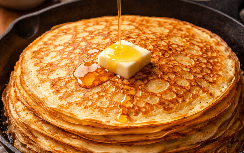 Если работаете металлическими лопатками или ножом, прогревайте их на сковороде каждый раз, когда переворачиваете блин, холодный металл может цеплять тесто, а горячими инструментами будет удобнее переворачивать.