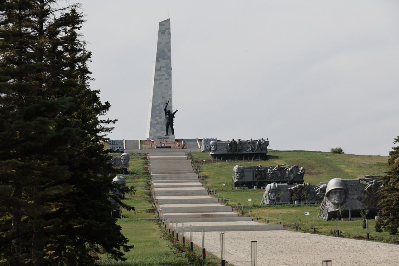 «<…> По Вашему поручению уже восстановлены крупные мемориальные объекты, такие как мемориальный комплекс „Саур-Могила“, Мемориал жертвам фашизма „Шахта 4/4-бис“, мемориальный комплекс боевой славы на реке Миус — там, где проходила так называемая непреодолимая германская оборона „Восточный вал“, мемориальный комплекс „Острая могила“, „Князь Игорь“ <…> и мемориальный комплекс молодогвардейцам „Непокоренные“, — доложил Мединский.