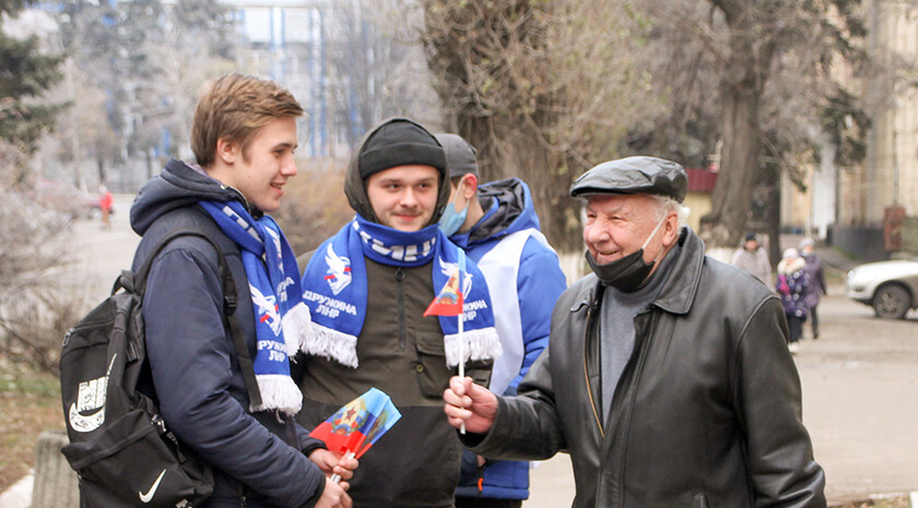 Активисты Молодежного совета при райадминистрации провели акцию "Флаг моего государства", в ходе которой раздали горожанам листовки с информацией о государственных символах ЛНР.
