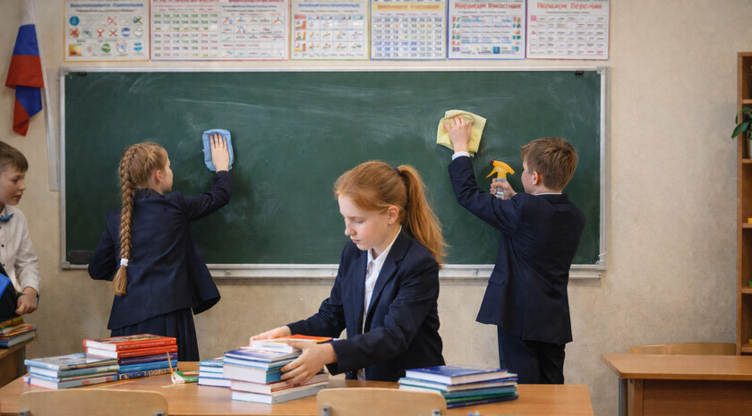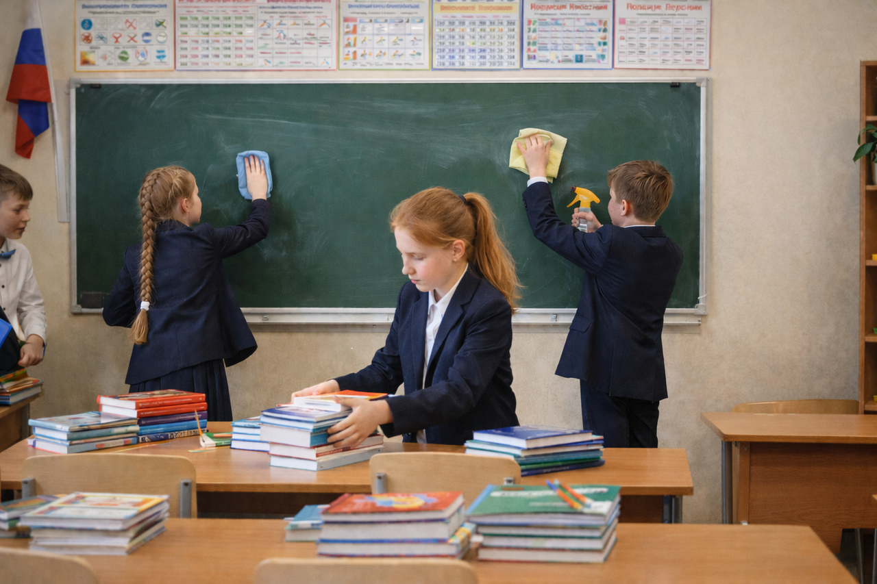 Обязательные дежурства и уборка в школах являются элементами трудового воспитания, это регламентировано федеральными стандартами. Об этом заявили в пресс-службе Минпросвещения РФ.