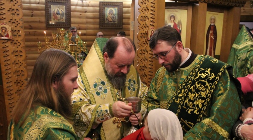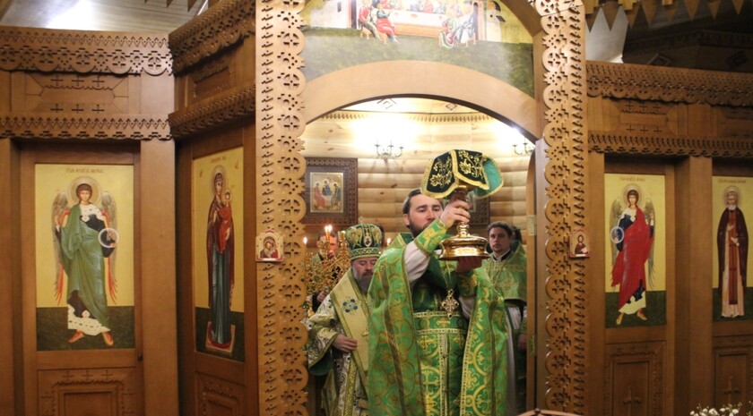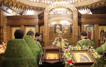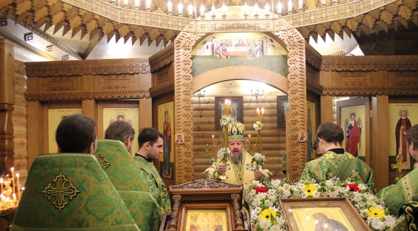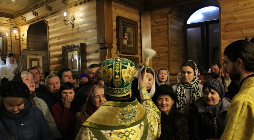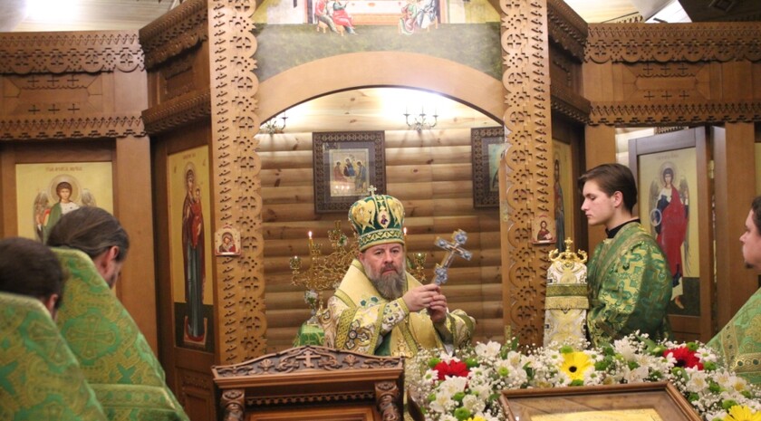 Правящий архиерей после завершения литургии и причастия поздравил церковную общину Храма с праздником.