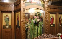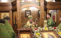 "Дорогие братья и сестры, я всех вас сердечно приветствую и поздравляю с воскресным днем, неделей перед Богоявлением, а также с престольным праздником этого святого храма, днем памяти преподобного и богоносного отца нашего Серафима Саровского и всея Руси чудотворца. Сегодня святая церковь совершает память одного из величайших не только русских святых, но святых вселенской церкви. И это свидетельствует о том, что его жизнь, его подвиг, его труды, действительно, поражают наше духовное воображение и наше духовное понимание. Он прославился, прежде всего, своим смирением, своей любовью к Богу и любовью к своим ближним. И этот пример – образец для нашего подражания", - отметил в своем обращении Владыка.