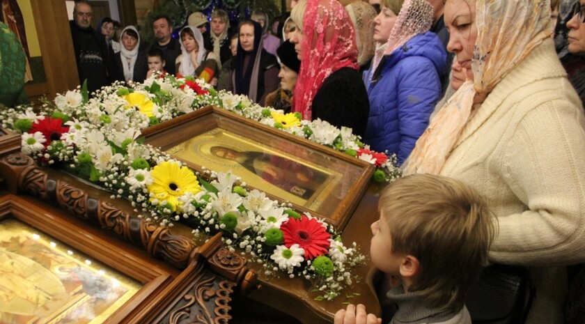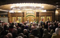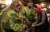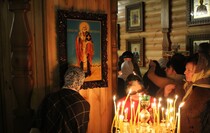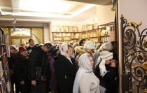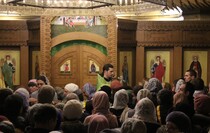 Священники Луганской епархии Украинской православной церкви Московского патриархата (УПЦ МП) во главе с митрополитом Луганским и Алчевским Митрофаном провели божественную литургию в престольный праздник храма во имя преподобного Серафима Саровского, расположенного в цокольном этаже столичного храма в честь иконы Божией Матери "Умиление".
