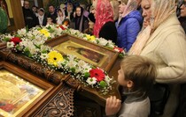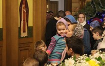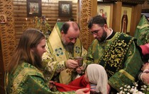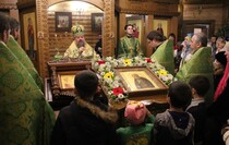"Дорогой владыка! От лица священства храма, от лица всей нашей православной семьи – вы видите, как много людей сегодня, и не только потому, что воскресный день сегодня, а потому что они пришли вместе с нами разделить радость – разрешите поздравить Вас с праздником. Мы благодарны Вам за ваш визит к нам, молитвенное наше исправление. И, воистину, для нас очень важна Ваша молитва, потому что наша община растет, ей уже мало места здесь в храме - мы молимся и просим Ваших молитв, чтобы в скором времени мы вошли уже в верхний храм, и начали там богослужения. Просим вашего архипастырского благословения на устроение, благоукрашение и открытие нового храма", - обратился священник.