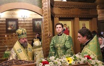 Настоятель храма протоиерей Александр попросил у владыки Митрофана благословение на окончание строительных работ и открытие основного храма в честь иконы Божией матери "Умиление".