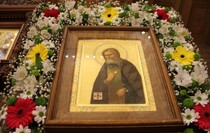 "Желаю, чтобы его святыми молитвами Господь простил нам наши грехи вольные и невольные, о которых мы забываем, и не помним, и не обращаем на них внимание. Пускай его святыми молитвами Господь преклонит к нам свою милость и поможет нам исправить нашу жизнь, чтобы она была основана на заповедях Христовых, заповедях евангельских", - сказал он.