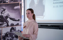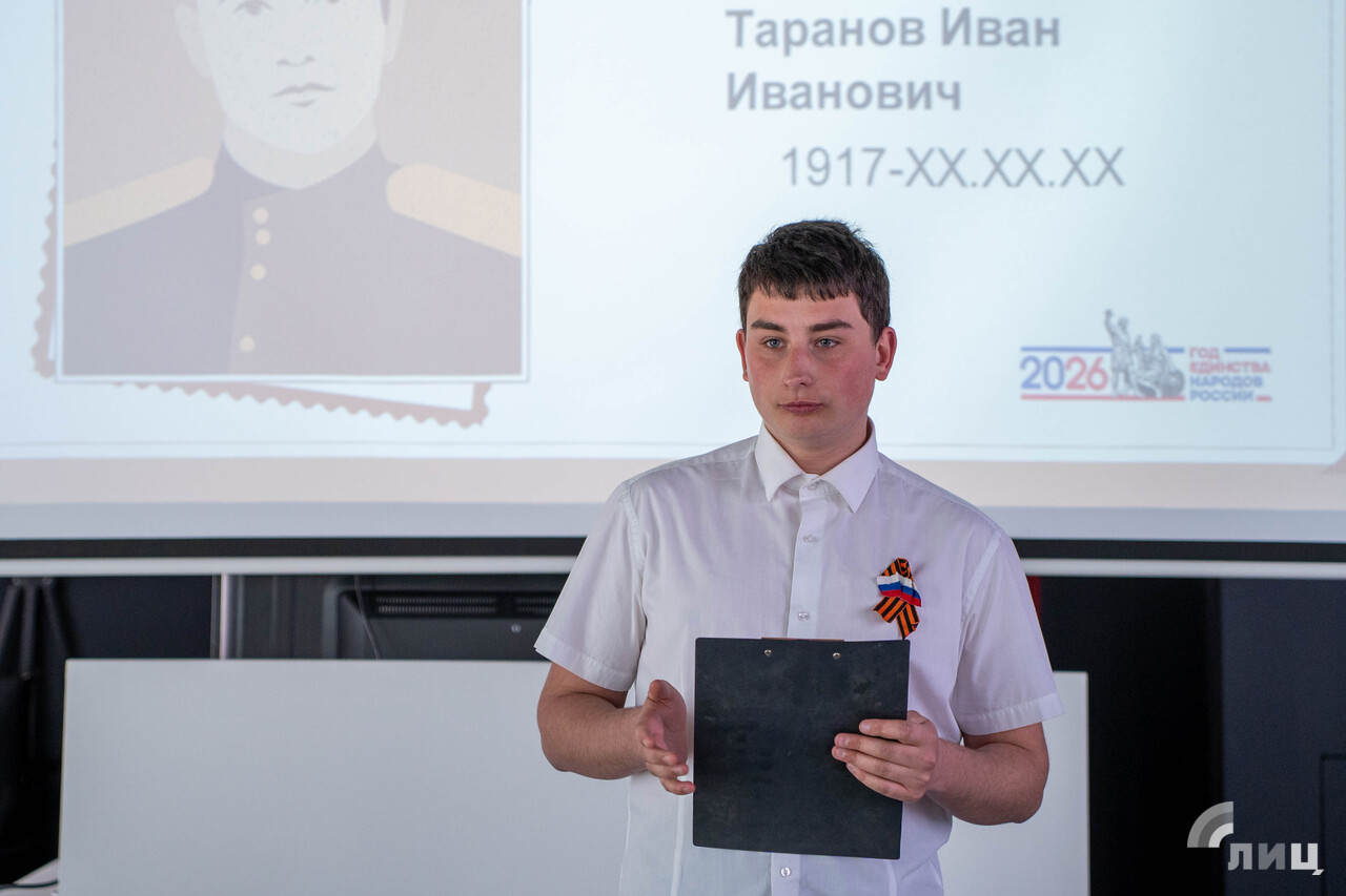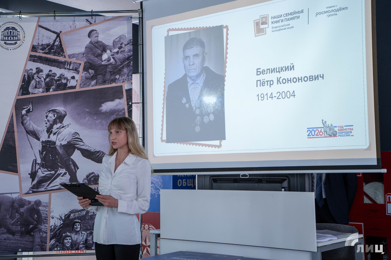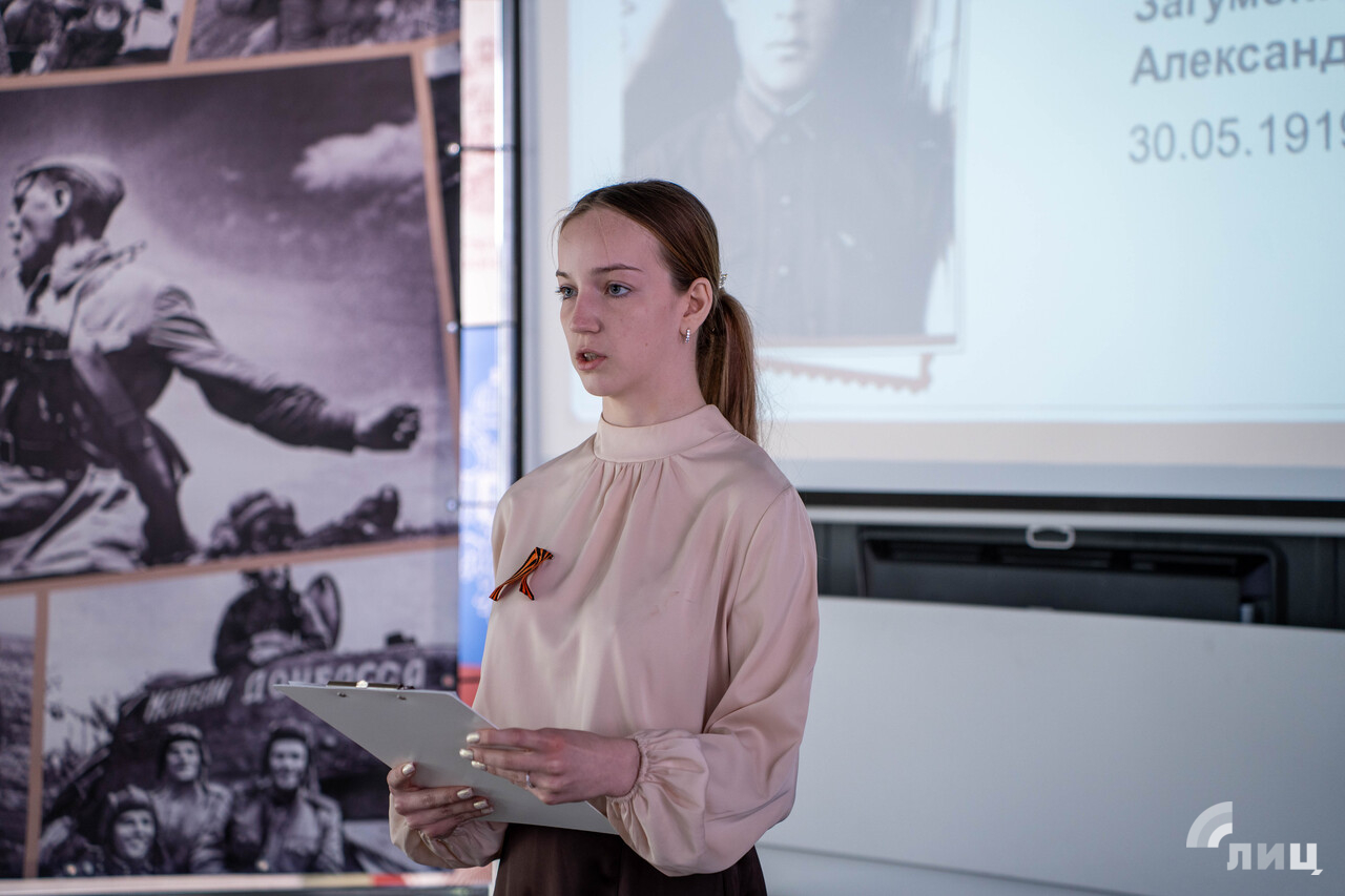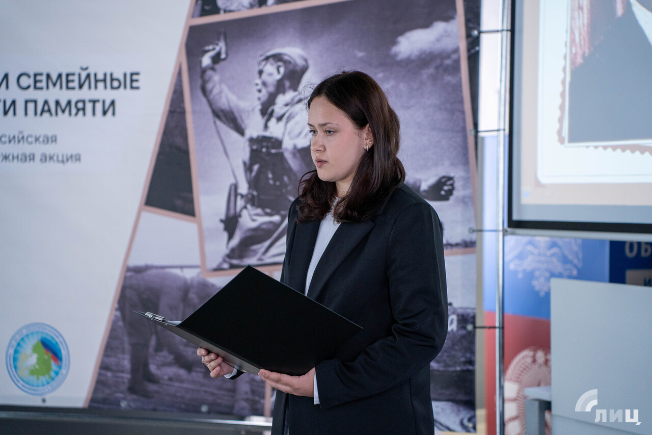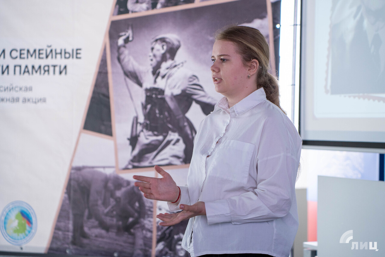 Молодые люди выступили с короткими докладами, в основе которых — истории из семейных архивов об их прабабушках и прадедушках, внесших свой вклад в Великую Победу.