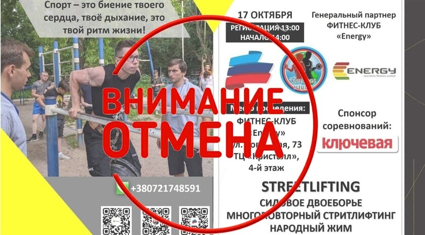 "Соревнования по стритлифтингу, которые были запланированы Молодежным парламентом ЛНР на 17 октября, переносятся на неопределенный срок в связи с ухудшением эпидемиологической обстановки", - говорится в сообщении.