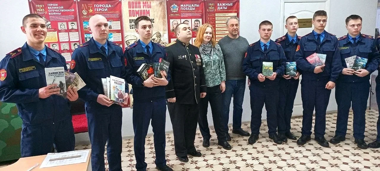Генеральный директор московского издательства «Яуза» Павел Быстров представил в Республиканском казачьем кадетском корпусе имени маршала авиации Александра Ефимова новые книги, посвященные теме СВО, а также двух авторов этой серии — Екатерину Блынскую с романом «Все, вот что мы верим» и действующего офицера морской пехоты РФ, майора Дмитрия Леонова (псевдоним Дин Ветербле) с его дебютной книгой «Записки сумасшедшего капитана». Также Быстров передал в библиотеку корпуса партию новых книг, посвященных СВО. Об этом с места события передает корреспондент ЛИЦ.