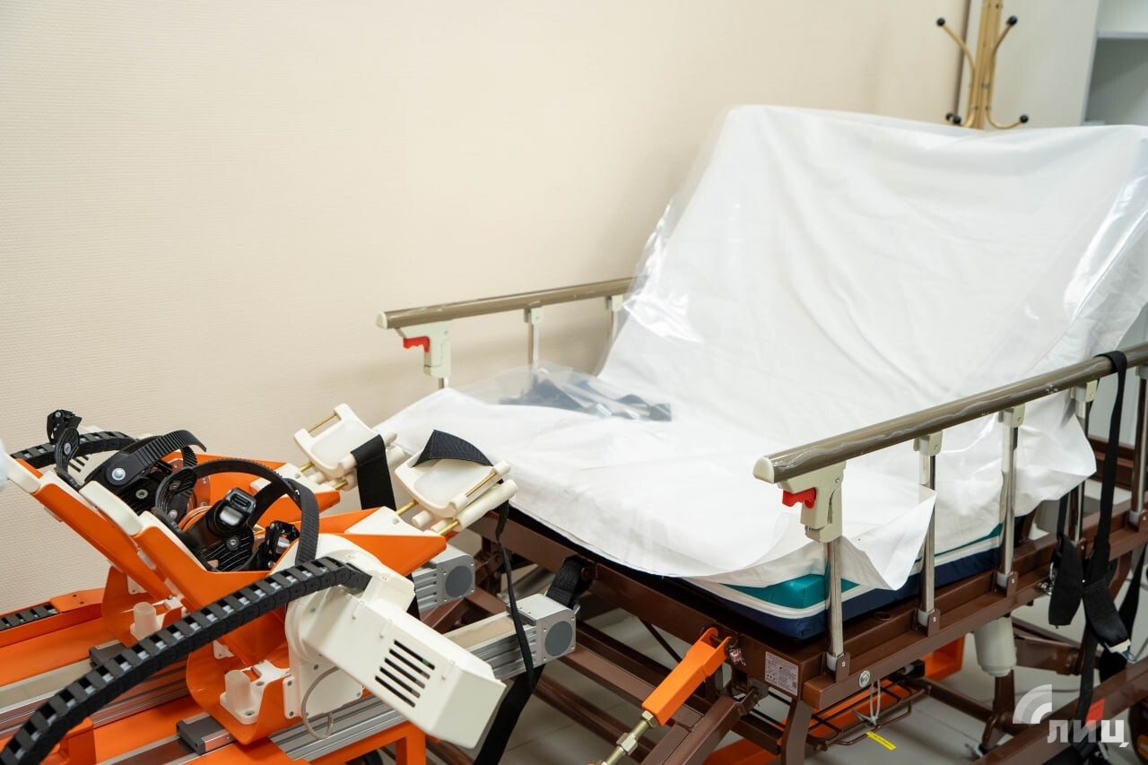 «Например, антигравитационная дорожка — мы за счет вакуума больного поднимаем, создаем отсутствие давления, и больной, который до этого не ходил, может начинать ходить. Аппарат для нейростимуляции дает кожную стимуляцию спинного мозга, и мы можем на более раннем этапе начать реабилитационную программу», — отметил врач.