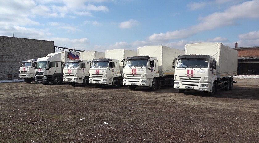 Первый гуманитарный конвой МЧС РФ прибыл в Луганскую Народную Республику 22 августа 2014 года. Всего с августа 2014 года автомобильные колонны МЧС России доставили для жителей Луганской и Донецкой Народных Республик более 100 тыс. тонн гуманитарной помощи, из них в ЛНР – почти 49 тыс. тонн.