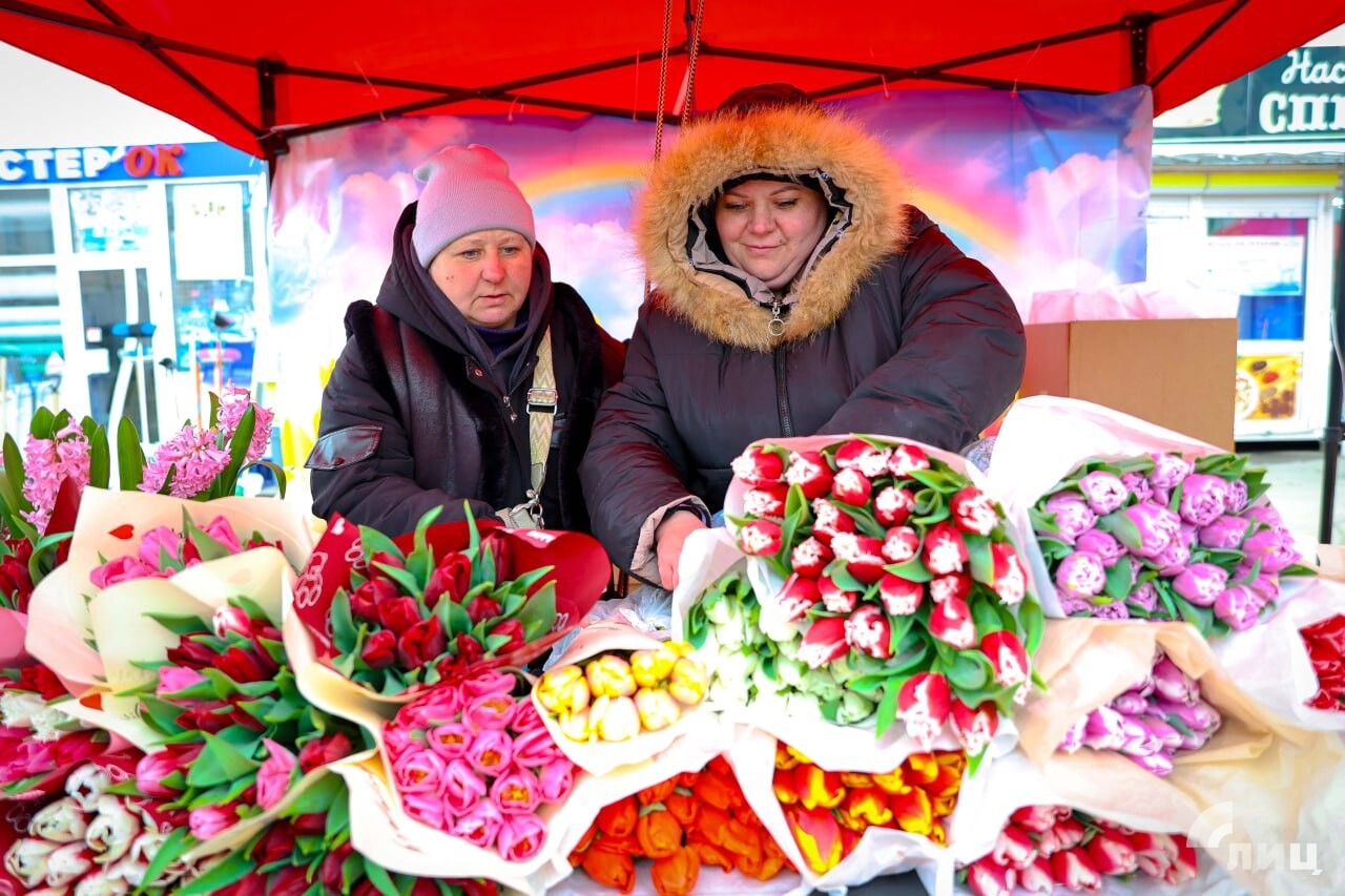 «Мы представили на ярмарке розы кустовые, тюльпаны в горшках, гиацинты в горшках, мимозы в букете, тюльпаны пионовидные и разноцветные, хризантемы и различные композиции. Цены, конечно, ниже, чем в магазинах», — рассказала корреспонденту ЛИЦ продавец Ирина.