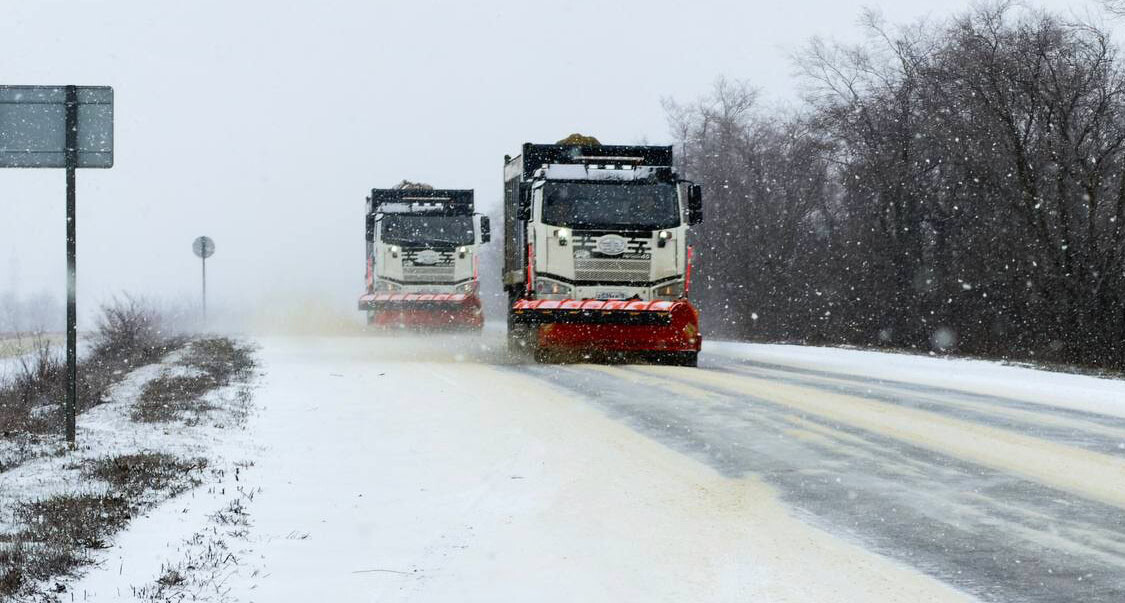«Со вчерашнего вечера проводим обработку дорожного покрытия противогололедными материалами на всех направлениях Республики. Прямо сейчас в работе находится 350 единиц спецтехники, — преимущественно комбинированные дорожные машины», — написал он в своем Телеграм-канале.