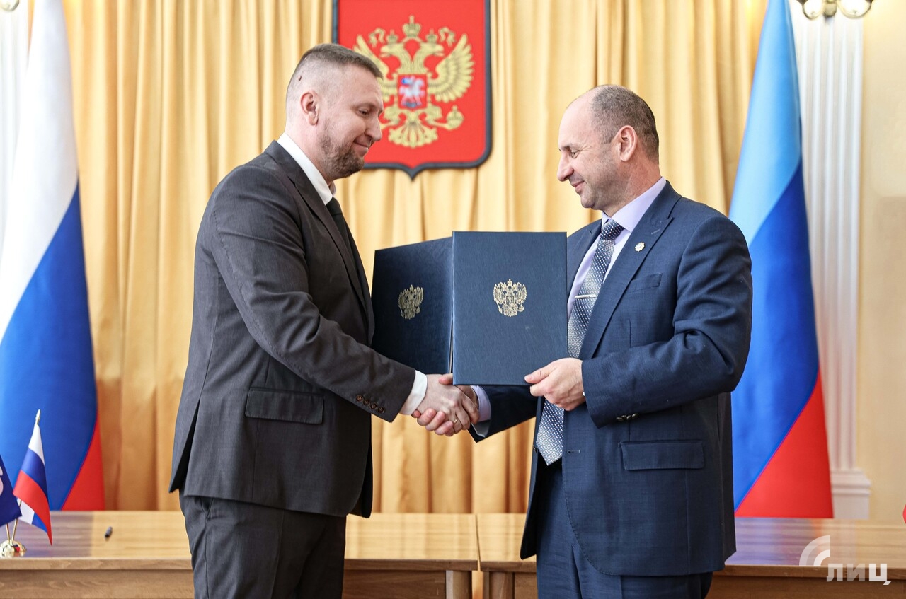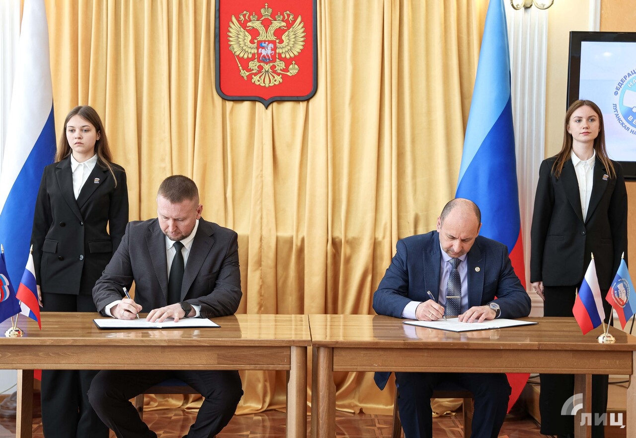 В ходе торжественного собрания также состоялось подписание соглашения о сотрудничестве и взаимодействии между Луганским региональным отделением партии «Единая Россия» и Федерацией профессиональных союзов Республики.
