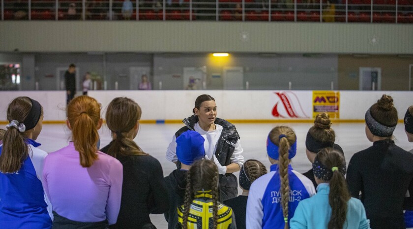 Олимпийская чемпионка по фигурному катанию Аделина Сотникова провела на Ледовой арене в Луганске мастер-класс для юных спортсменок. Об этом с места события передает корреспондент ЛИЦ.