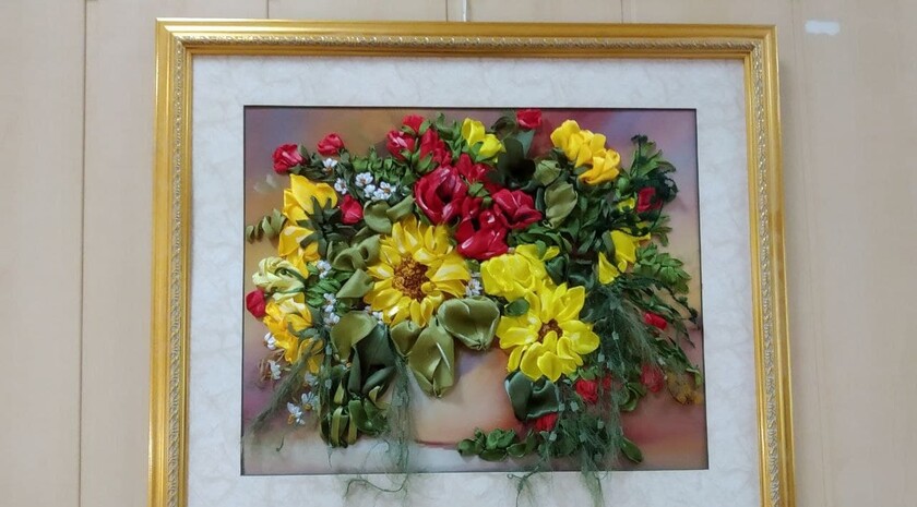"Первые свои работы мне как мастеру даже неловко показывать, а сегодня уже есть результаты, наработки, которые и представлены здесь, - сказала Крысенко. - Например, лентами я начала вышивать перед началом войны, это мое относительно новое увлечение. Поначалу не все получалось, но ничего, все приходит с опытом и временем".