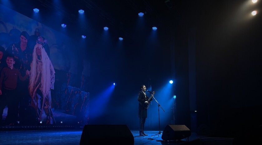 Заслуженный артист Московской области и Удмуртской республики Павел Быков впервые исполнил композицию «На Херсон» о своих гастролях в регионе, передает корреспондент Херсонского агентства новостей с презентации в Москонцерт Холле.