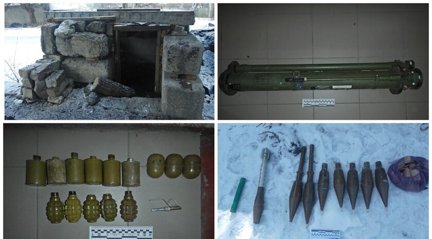 Также изъяты пять гранат Ф-1; шесть гранат РГМ; три гранаты РГД; запал УЗРГМ (унифицированный запал ручной гранаты модифицированный); 41 снаряд калибра 30 мм; 38 патронов калибра 5,45 мм; 914 патронов калибра 7,62 мм; пять взрывателей РГМ-2; дистанционный взрыватель ТМ-2.