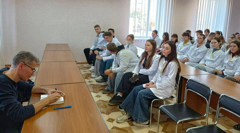 Студенты узнали, что писатель — их земляк, уроженец Донецкой области, ныне — практикующий московский медик, который с начала СВО работает в полевых госпиталях. Эта работа включает как командировки от Федерального центра медицины катастроф, так и волонтерские выезды, которые он совершает в свой отпуск.