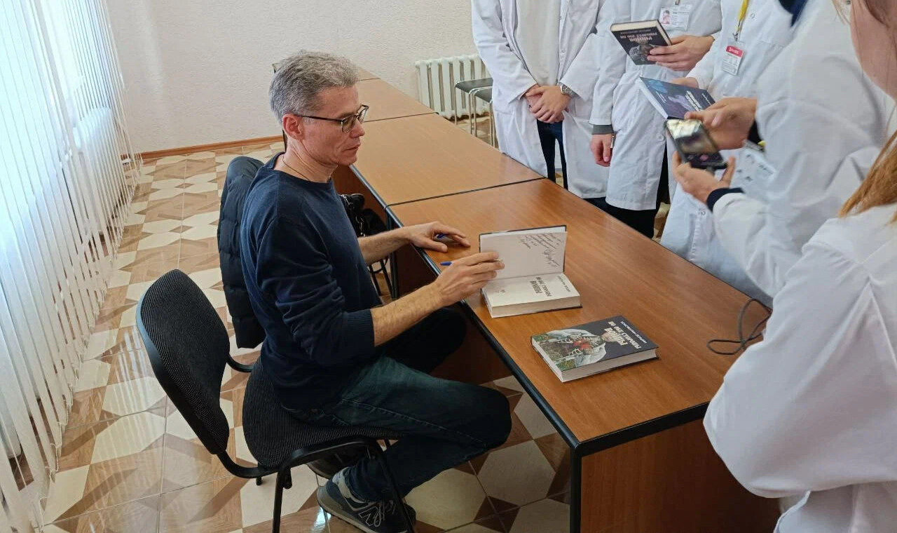 Студенты узнали, что писатель — их земляк, уроженец Донецкой области, ныне — практикующий московский медик, который с начала СВО работает в полевых госпиталях. Эта работа включает как командировки от Федерального центра медицины катастроф, так и волонтерские выезды, которые он совершает в свой отпуск.