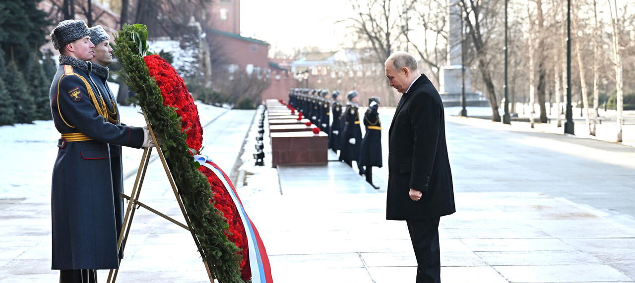 Президент РФ Владимир Путин в День защитника Отечества возложил венок к Могиле Неизвестного Солдата у Кремлевской стены.