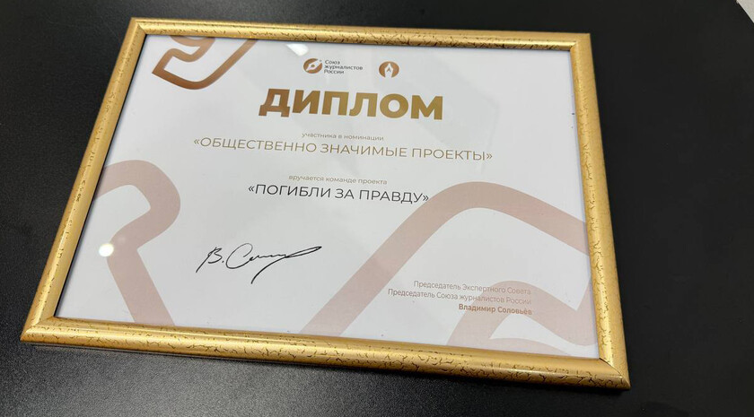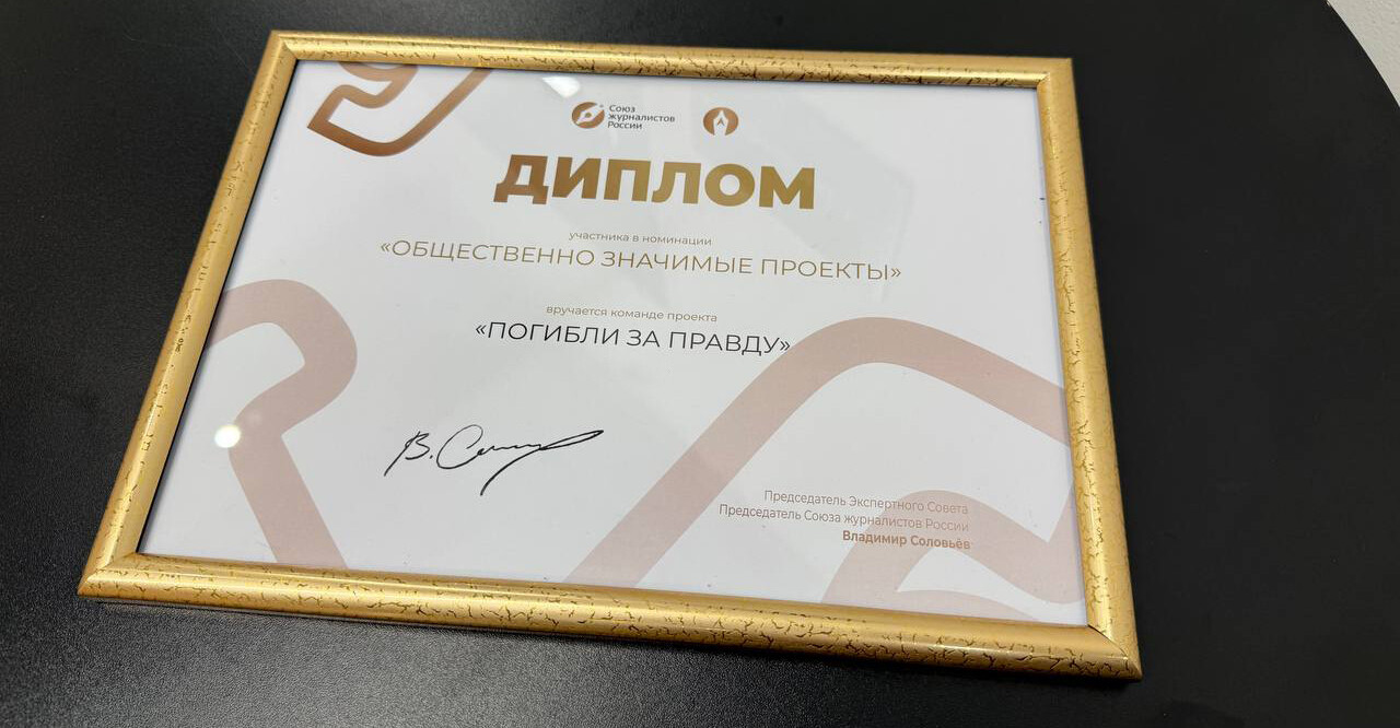 Проект информационных агентств Донбасса и Новороссии «Погибли за правду» удостоен диплома премии Союза журналистов России «Золотая стратегия».