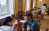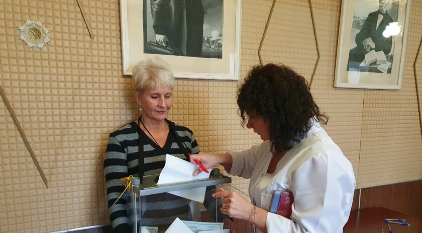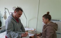 Председатель участковой комиссии № 414 Ленинского района Луганска Сергей Зелинский проинформировал, что "в лечебном учреждении организована выездная точка для голосования", здесь "могут проголосовать больные, сотрудники, а также военнослужащие, которые проходят лечение".