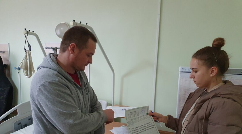 "Я один из первых в этой больнице (проголосовал), и я очень рад, что мы будем присоединяться к Российской Федерации и закончим эту войну вместе", - сказал военнослужащий.