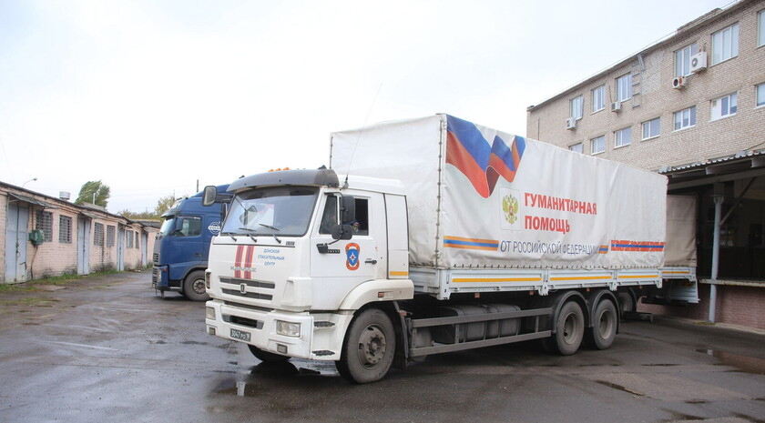 Первый гуманитарный конвой МЧС РФ прибыл в Луганскую Народную Республику 22 августа 2014 года. Всего с августа 2014 года автомобильные колонны МЧС России доставили для жителей Луганской и Донецкой Народных Республик более 100 тыс. тонн гуманитарной помощи, из них в ЛНР – почти 49 тыс. тонн. *к11*к29*с
