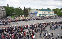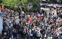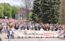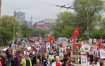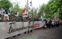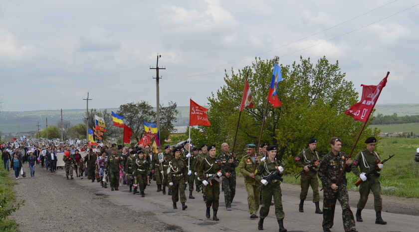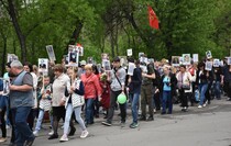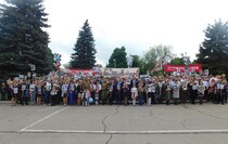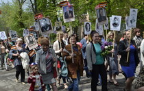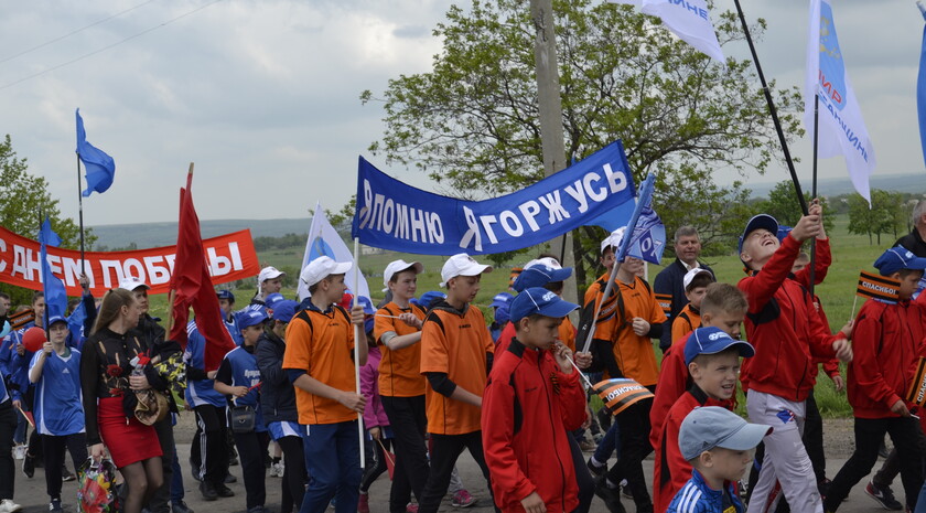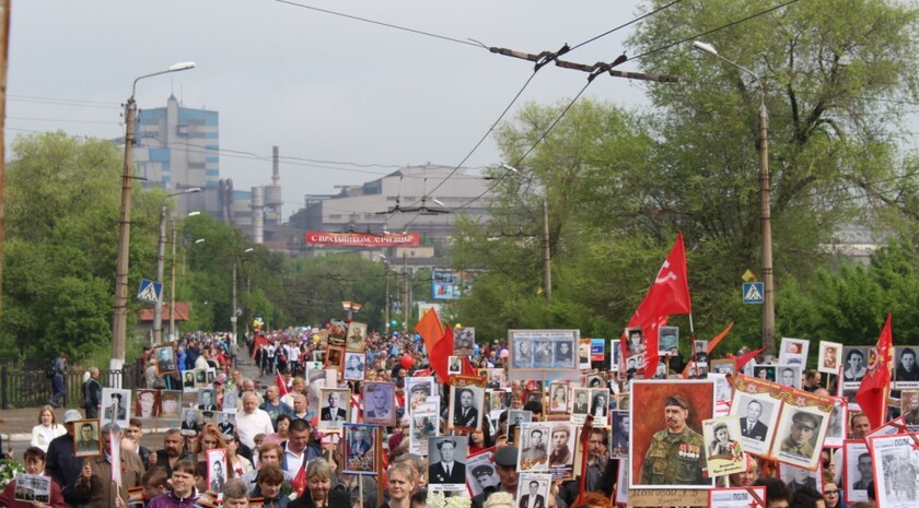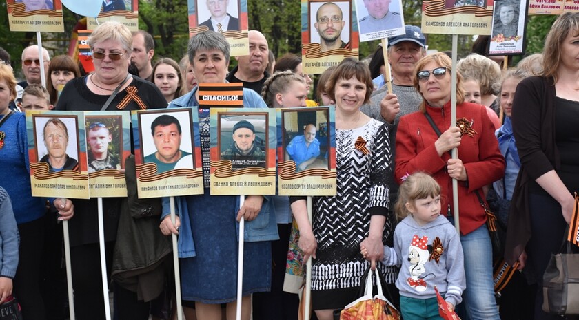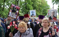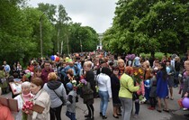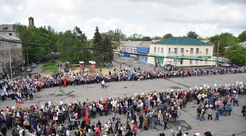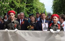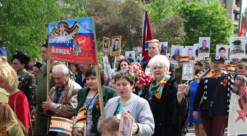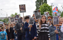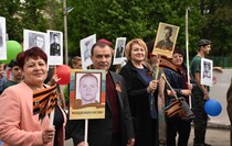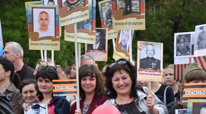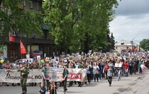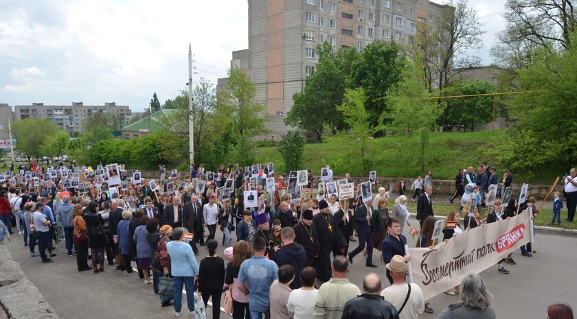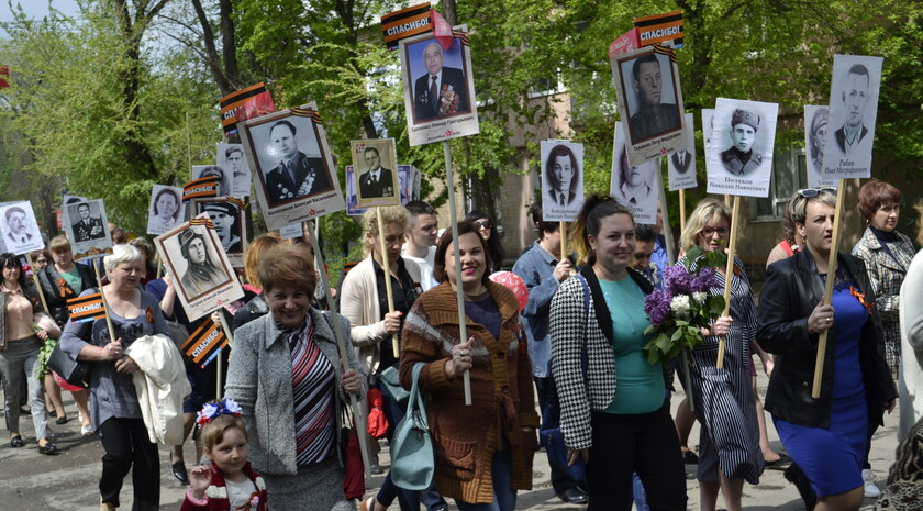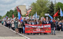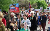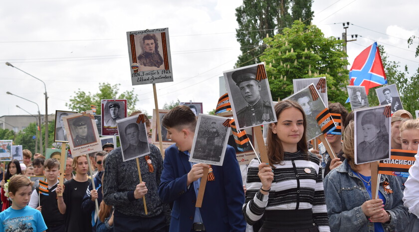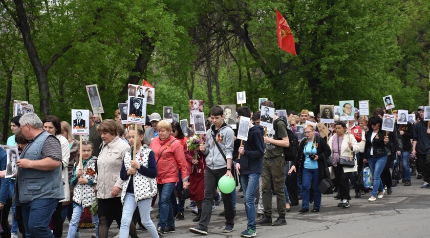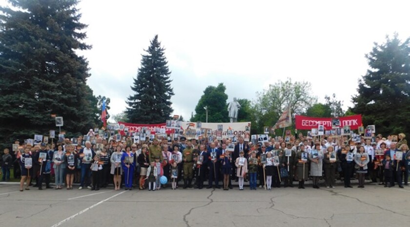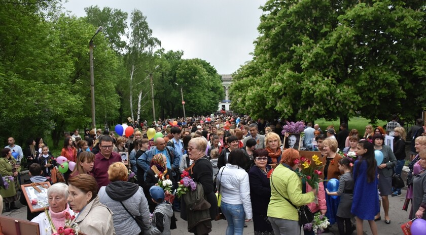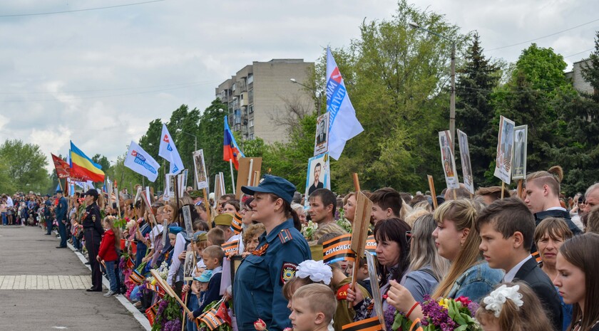 Затем состоялось шествие "Бессмертного полка". Порядка двух тысяч славяносербцев прошли с портретами своих родных и близких, почтив тем самым память героев армии и флота, тружеников тыла и партизан, узников фашистских лагерей, блокадников, детей войны и погибших ополченцев - защитников Донбасса.