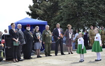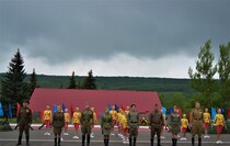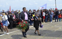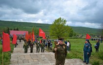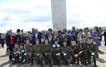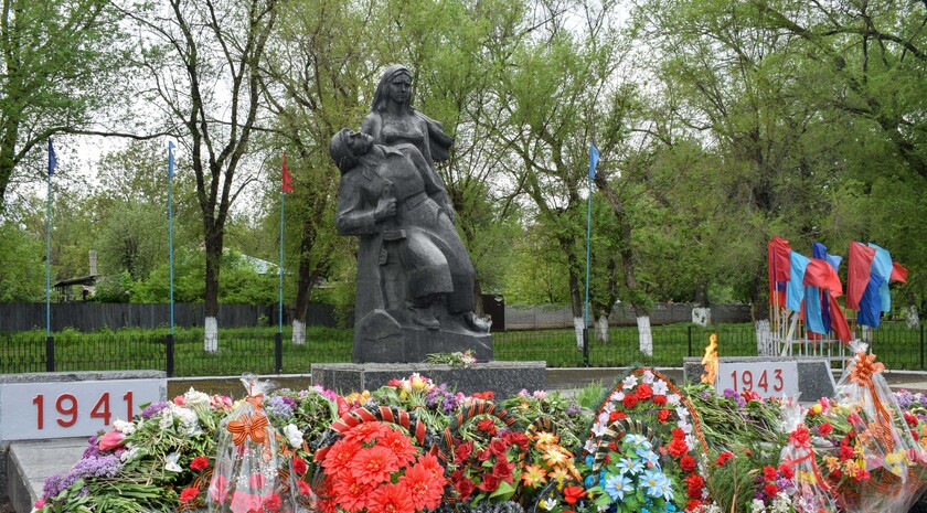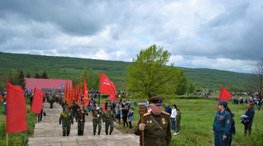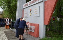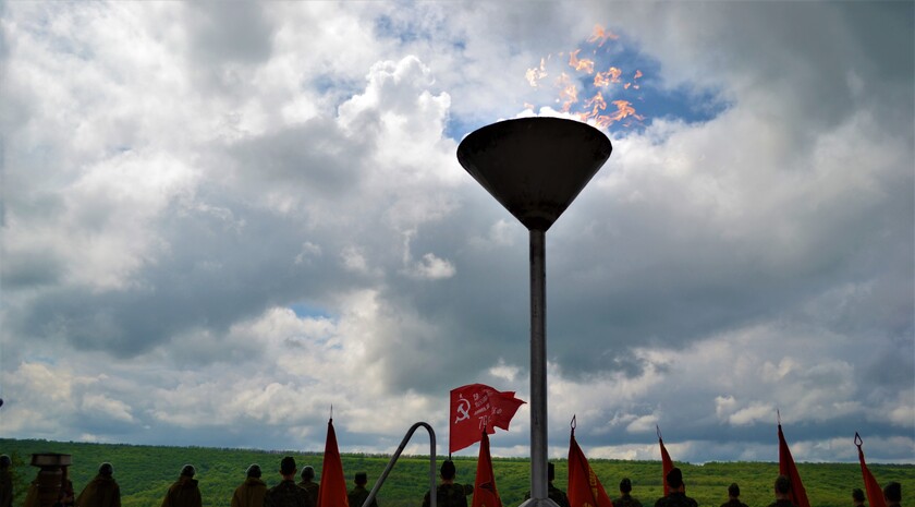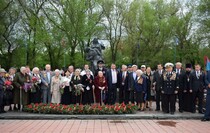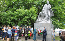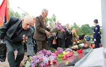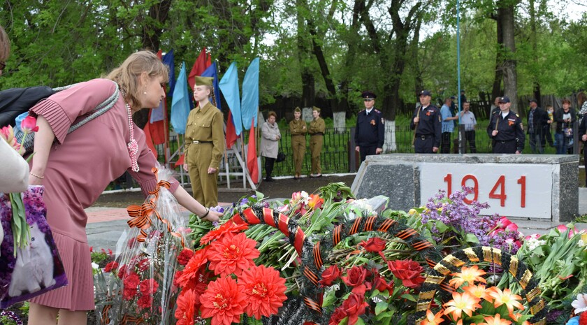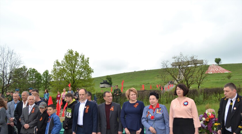 Собравшиеся минутой молчания почтили память погибших в годы Великой Отечественной войны и возложили цветы к братской могиле, а делегация молодежи с ветеранами возложила цветы к памятнику "Комбат".