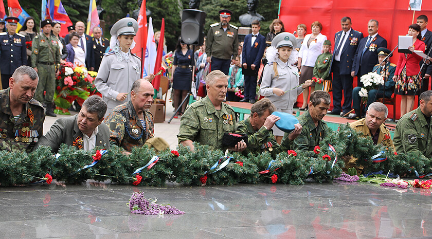 "9 мая праздник со слезами на глазах. Праздник самый великий, самый прекрасный и трогательный. Это особый день для всех нас – день, когда наш народ одержал Победу в самой жестокой войне, отстояв независимость Родины и защитив мир от фашизма", - отметил глава администрации Луганска Геннадий Карцев.