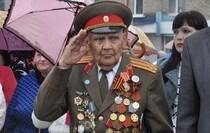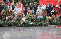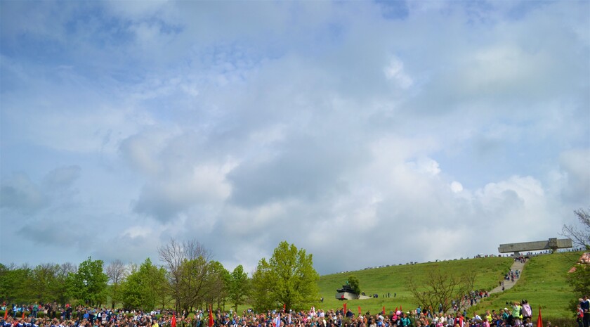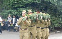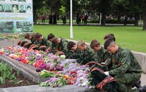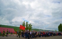Почтить память ушедших солдат Великой Отечественной войны собрались более 5 тыс. жителей. Митинг сопровождался маршем почетного караула Поста №1 агитбригады "Миротворцы", в которую вошли учащиеся кировской средней школы №3.